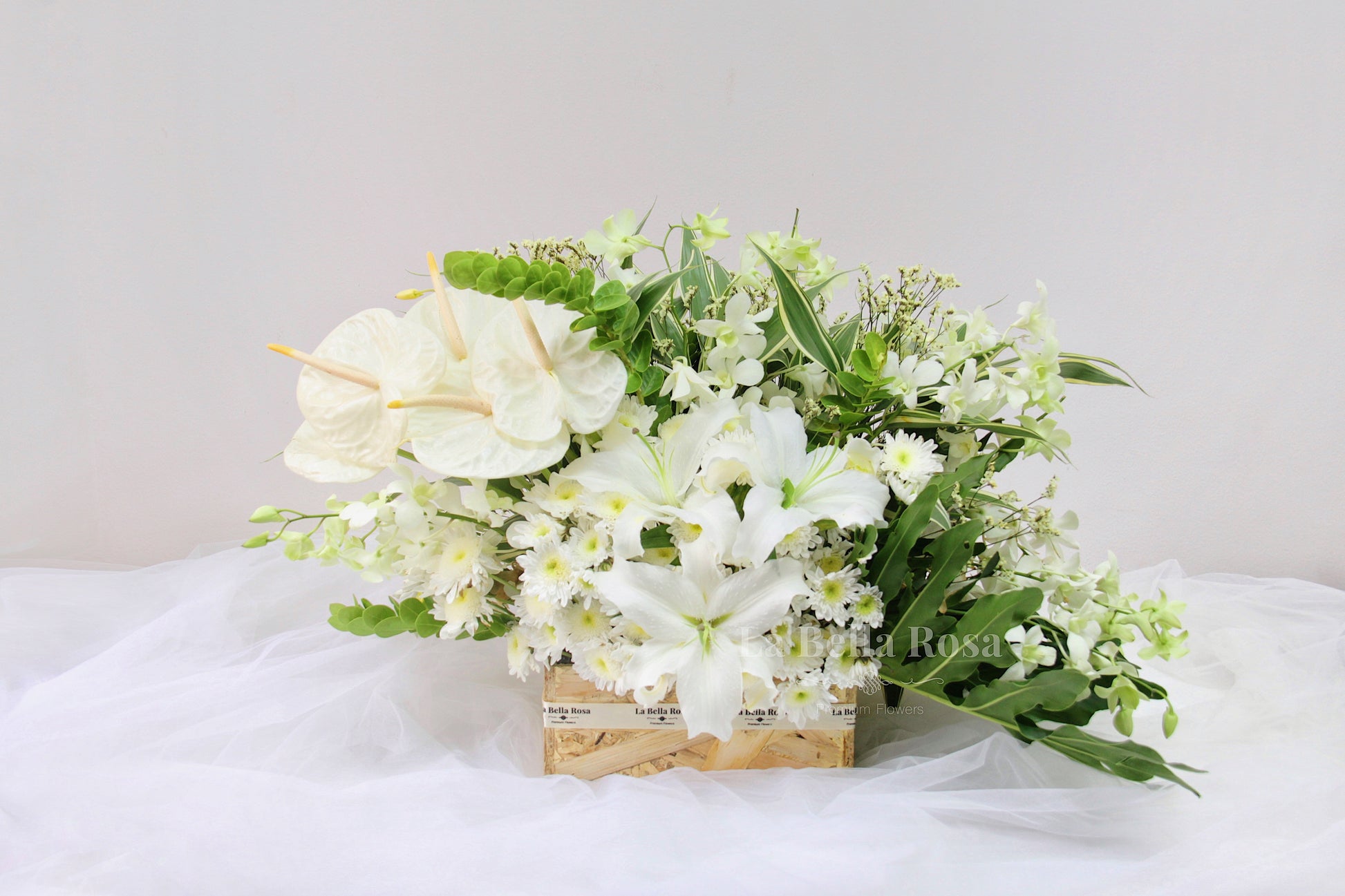 Please note that arrangements and wrap color may not look exactly 100% similar from photos as they are only for visualization guide purposes. Each arrangement is unique and hand-made with utmost care. If certain fresh flowers are unavailable on the day of delivery, we will replace with a suitable alternative of equal quality.