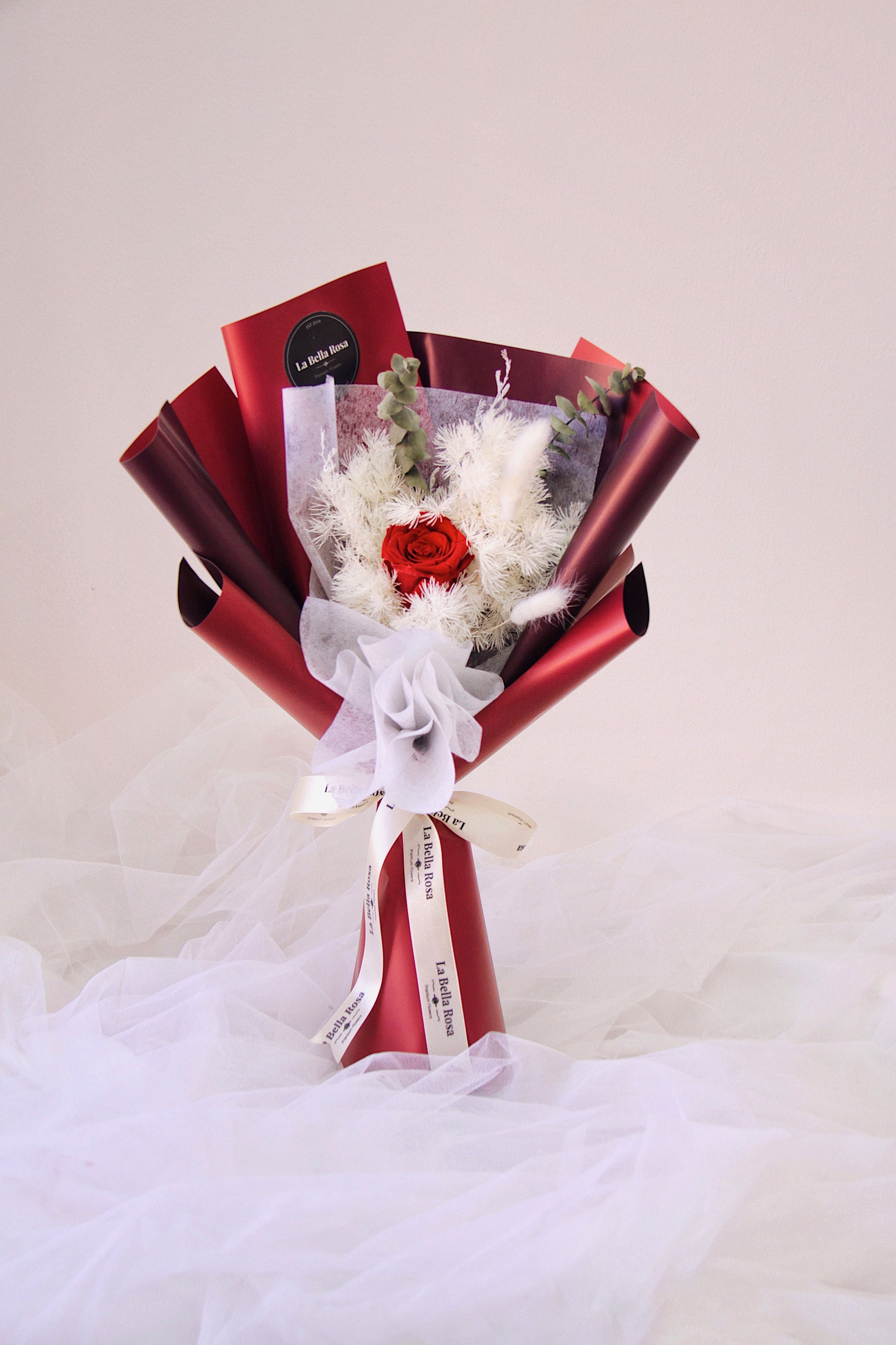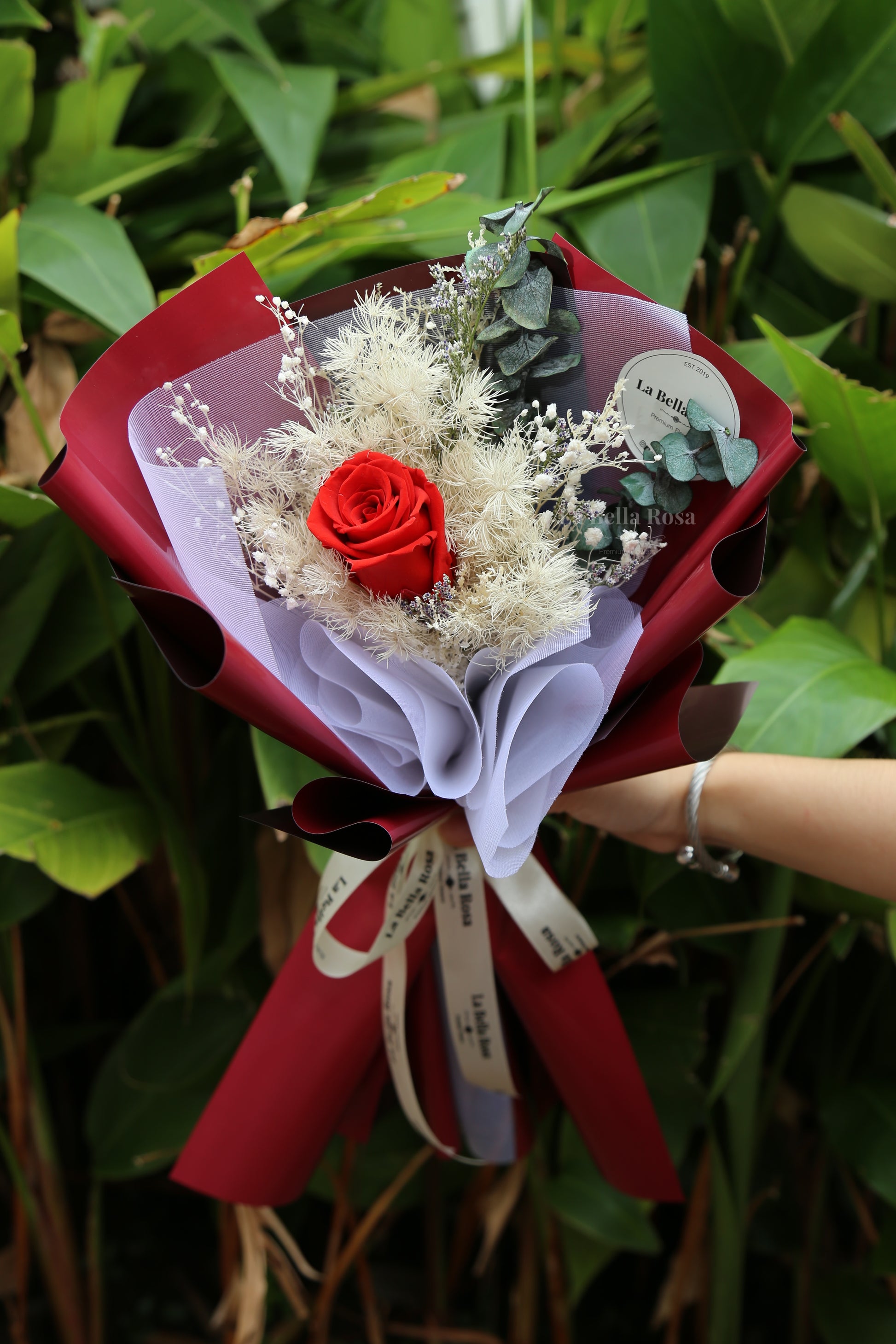 Please note that arrangements may not look exactly 100% similar from photos as they are only for visualization guide purposes. Each arrangement is unique and hand-made with utmost care. If certain dried flowers are unavailable on the day of delivery, we will replace with a suitable alternative of equal quality.
