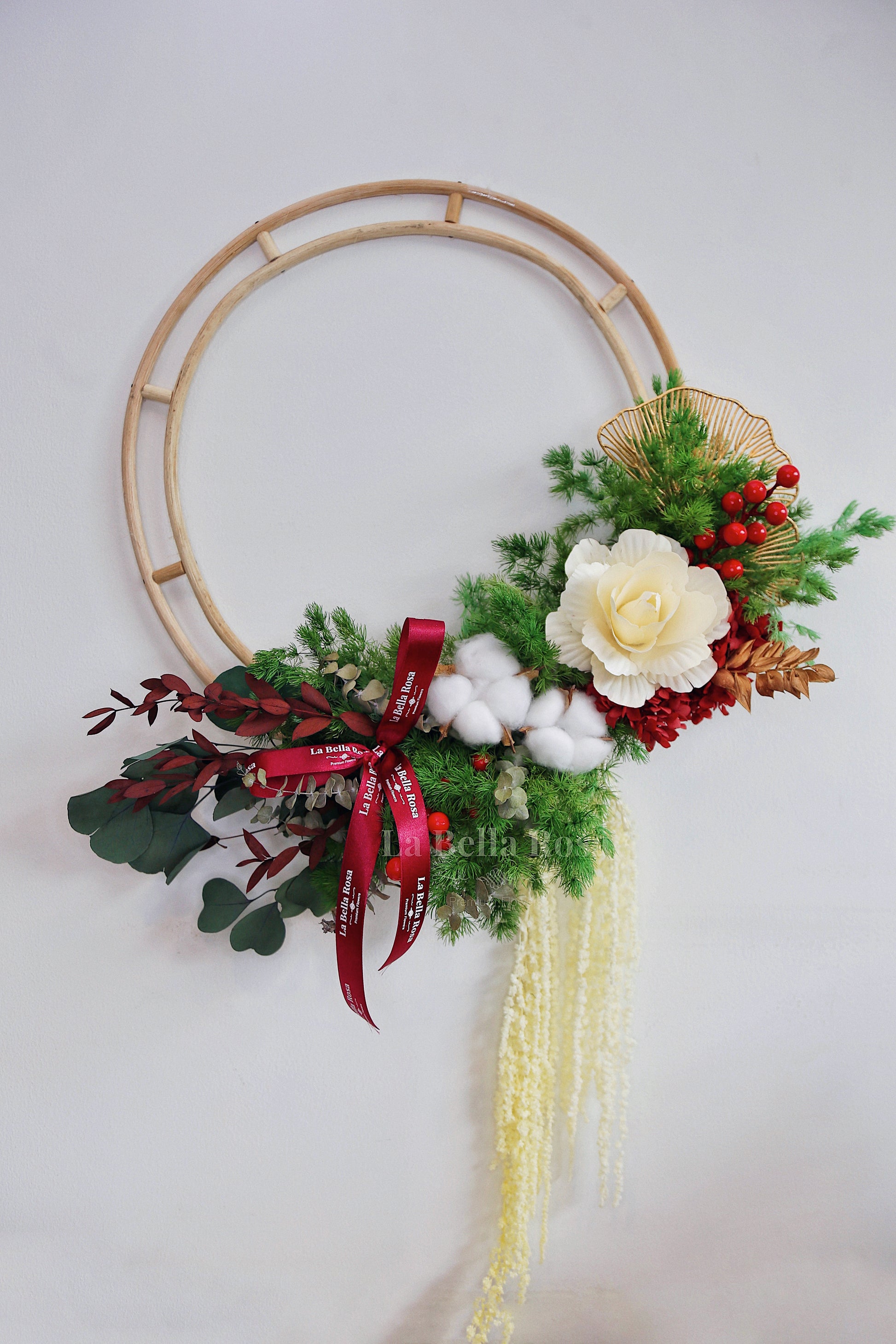 Celebrate the eternal love of Jesus through our simple yet elegant Esther Advent Wreath made with holiday-themed premium dried flowers and foliage.