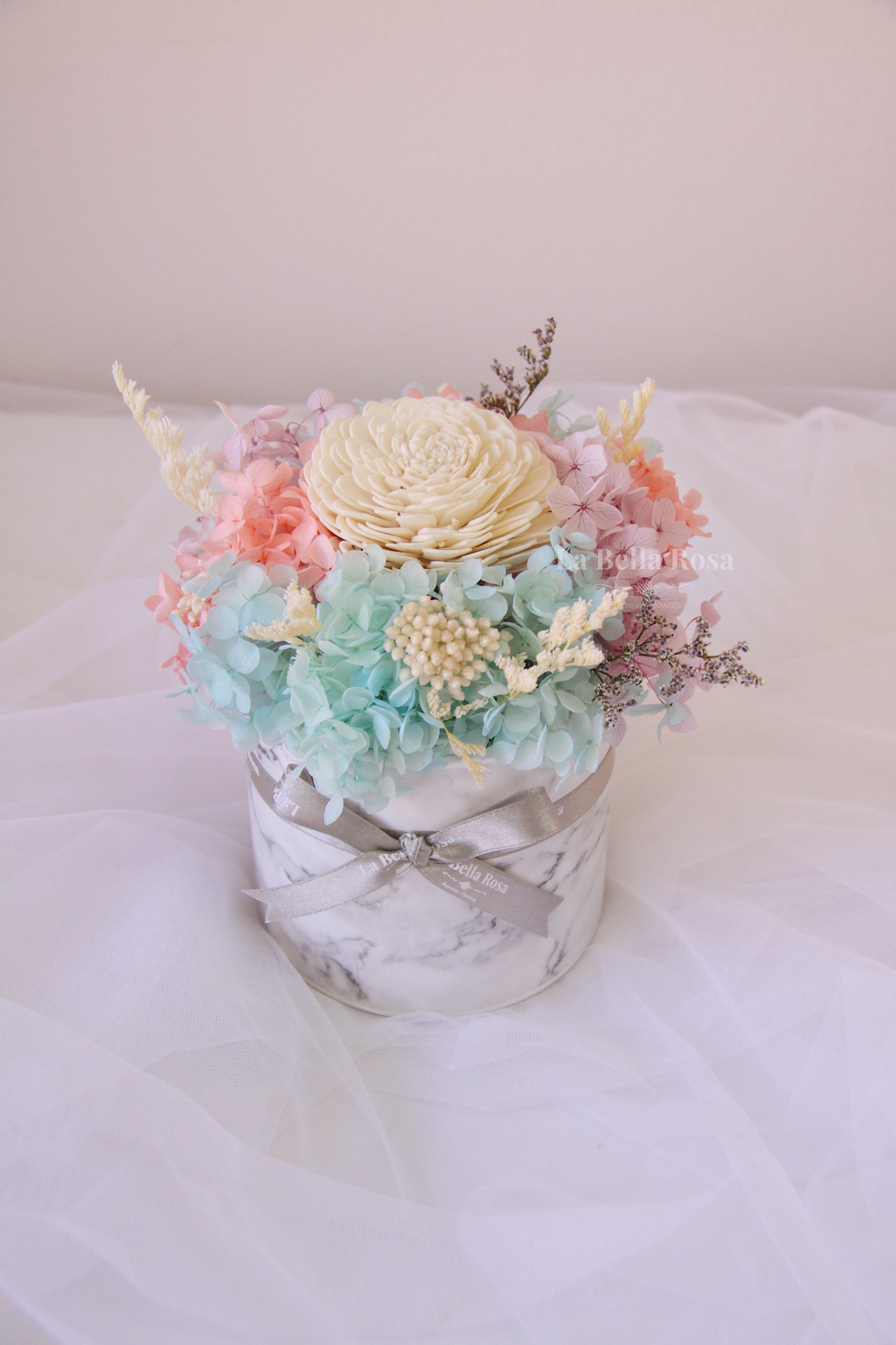 Please note that arrangements may not look exactly 100% similar from photos as they are only for visualization guide purposes. Each arrangement is unique and hand-made with utmost care. If certain dried flowers are unavailable on the day of delivery, we will replace with a suitable alternative of equal quality.