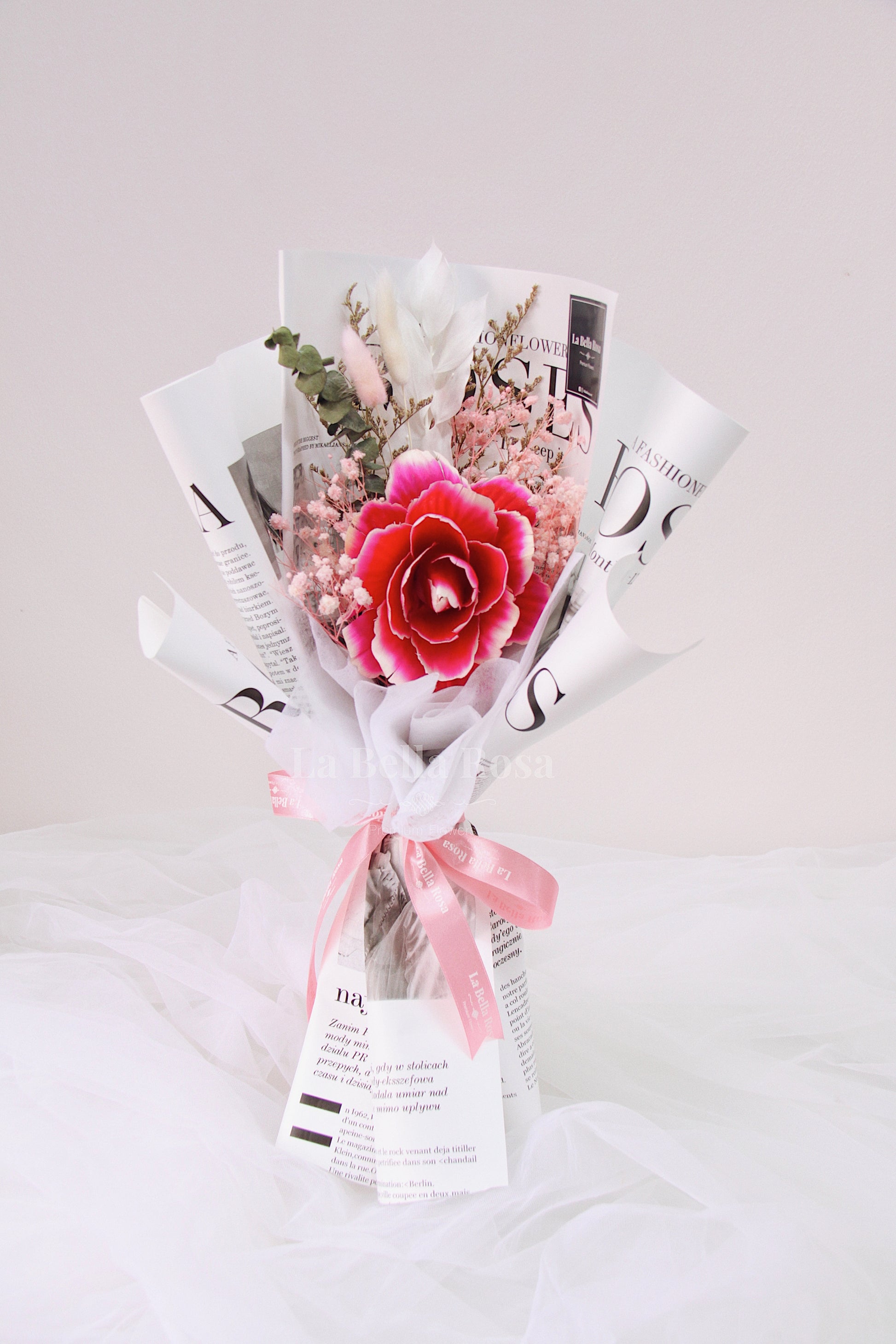 Please note that arrangements may not look exactly 100% similar from photos as they are only for visualization guide purposes. Each arrangement is unique and hand-made with utmost care. If certain dried flowers are unavailable on the day of delivery, we will replace with a suitable alternative of equal quality.