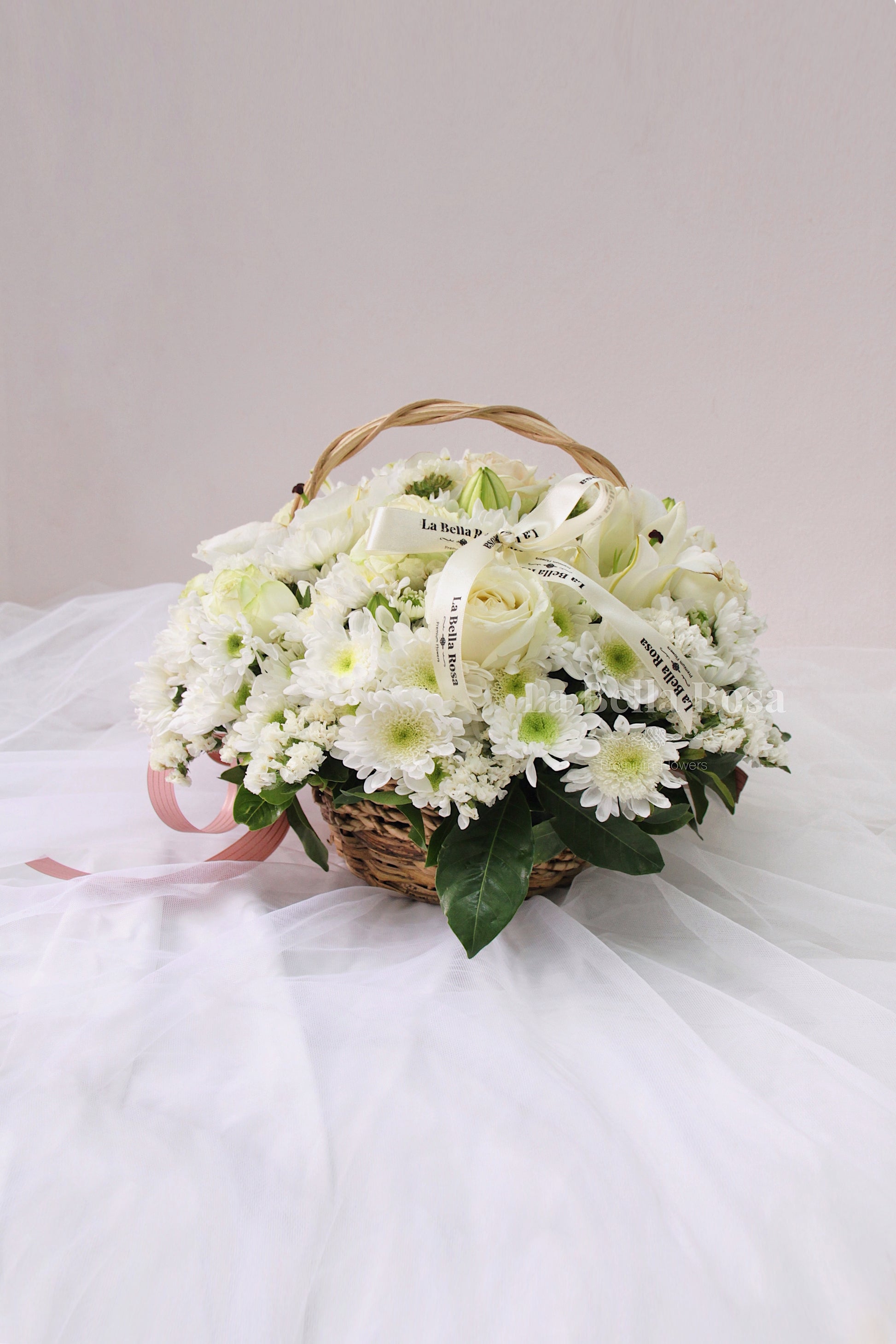 Beautiful floral basket arrangement for the angels who surround us everyday. Perfect for showing sympathy and condolences.