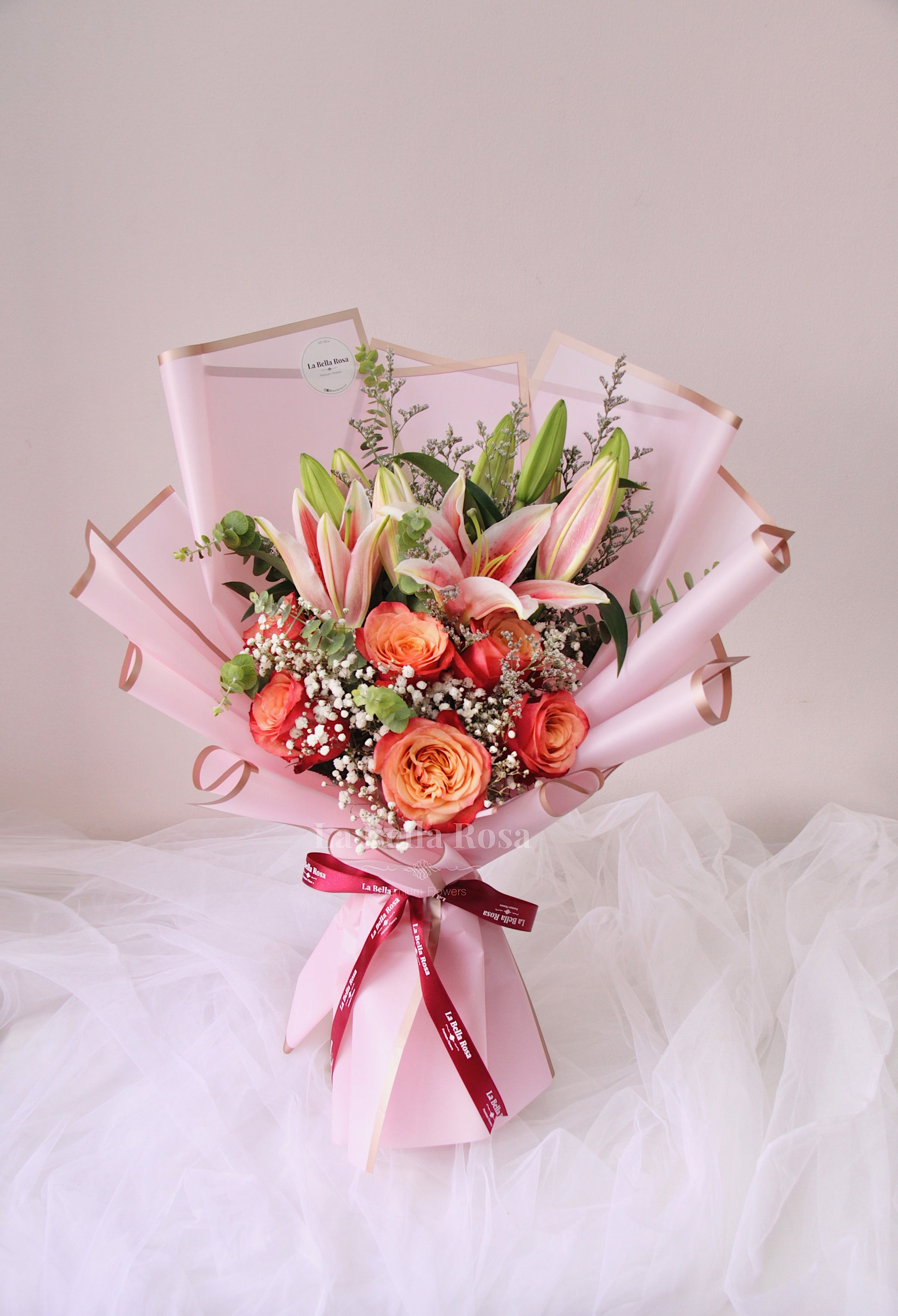 Samantha Bouquet is a lovely combination of Stargazer Lilies and half dozen Ecuadorian Roses that your loved one will surely appreciate.