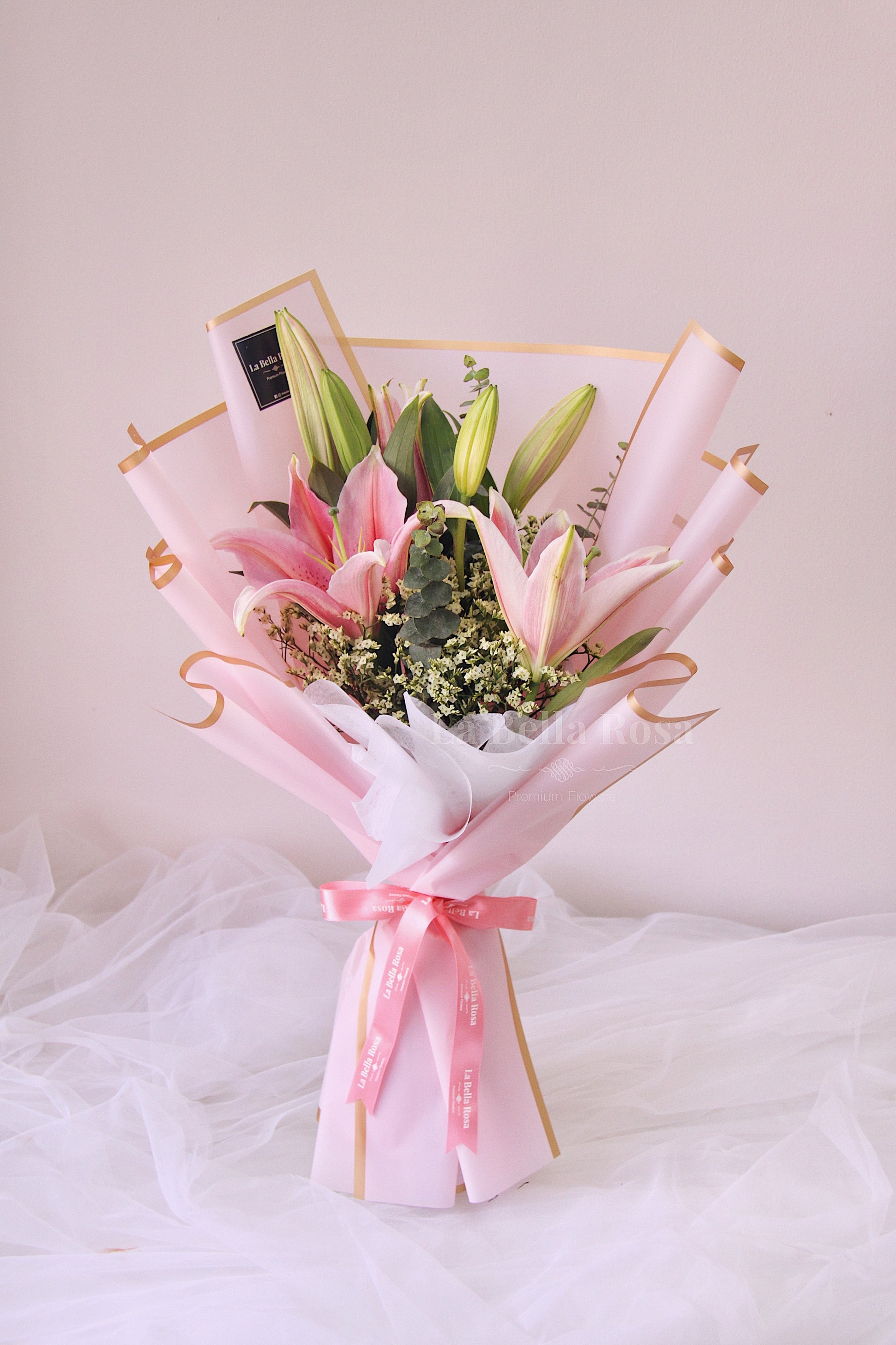 Bold, fragrant, and full of personality — our Selina Bouquet features vibrant stargazer lilies in striking pink tones, designed to make a statement. With their captivating scent and star-like petals, these blooms symbolize admiration and abundance. For the one who deserves flowers as unforgettable as she is.